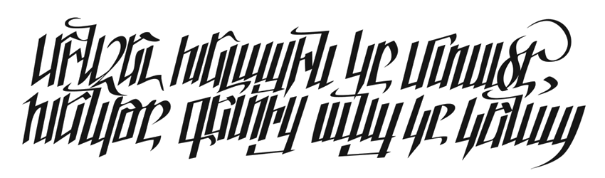 История армянской каллиграфии связана с христианством, принятым в качестве государственной религии за сто лет до создания армянской письменности. Фактически, стиль армянского письма, форма букв, являются нечто средним между восточным и западным миром средневековья. На первых порах особой популярностью пользовался вид письма Еркатагир, который приобрёл широкую популярность и используется по сей день. Характерной её особенностью является строгий, жирный шрифт, буквы состоят из нескольких несвязанных между собой частей. Иногда заглавные буквы искусственно увеличивались для обозначения абзацев и подобного. Затем появились и другие виды письма с более тонким шрифтом, цельными буквами, при этом часто стал использоваться курсив. В религиозных текстах искусно раскрашенные буквы приобретали вид растений, животных, ангелов, добавлялись сложные узоры. В XXI веке каллиграфии в Армении уделяется не такое внимание, как прежде.