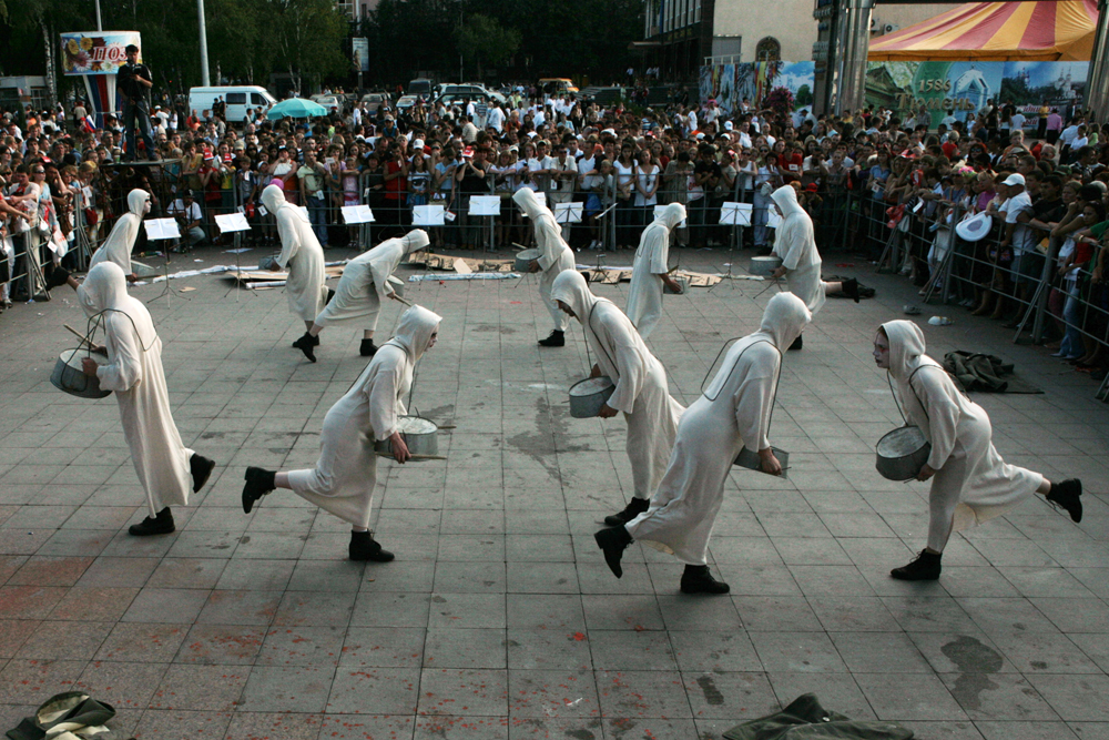 Описание: Авторский спектакль Виктора Панова. Нам дано увидеть убогое и поверженное человечество, жалкую толпу под сапогом гротескной тирании. Белые, безликие силуэты... Пересекаются, не замечая друг друга... И появляется зло во всем своем метафизическом ужасе. И наступает царство разрушения. А тем временем «Болеро» Равеля продолжает крещендо свою невозмутимую музыку... И есть во всем этом что-то глубоко потрясающее.